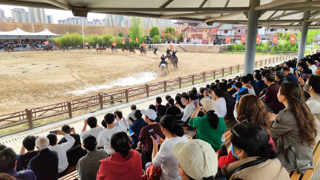 观看大型马战表演《光武帝校场点将》,马技,特效还有云台二十八将精彩对决,如同身临其境地在战场当中。