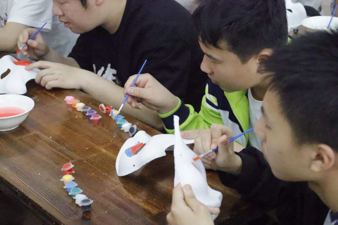 体验手工描绘,亲手绘制脸谱。老师向同学讲解历史渊源及代表人物脸谱,如关羽的红脸、包拯的黑脸、孙悟空的猴脸等,了解传统文化独特的艺术美感和深厚的文化内涵。
