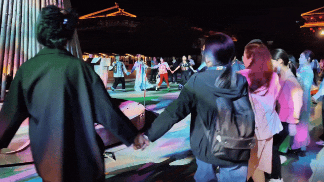 围绕着篝火,手拉手,心连心