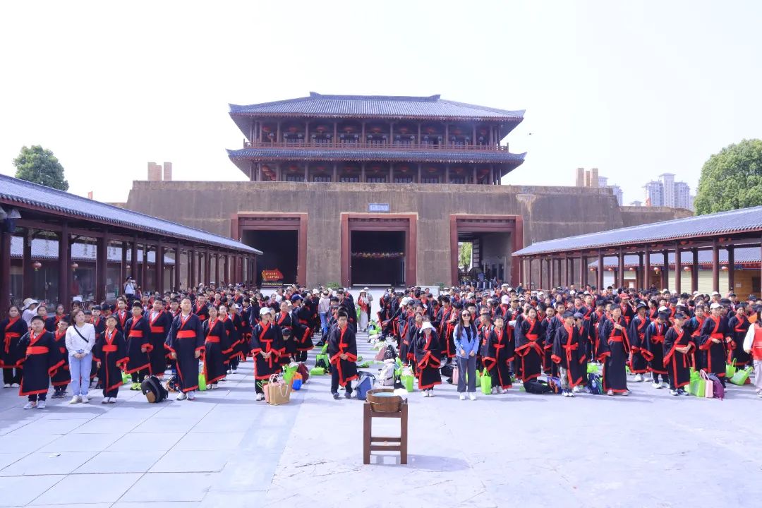 清晨,学生们身着统一服装,在铁路工作人员的引导下有序乘车,乘公交专车直达车站换乘专列。抵达景区后,古色古香的建筑与身着汉服的工作人员瞬间将师生带入历史情境。学生们换上汉服,参与庄重的“汉式感恩礼”,通过拜师仪式感悟尊师重道的传统伦理。