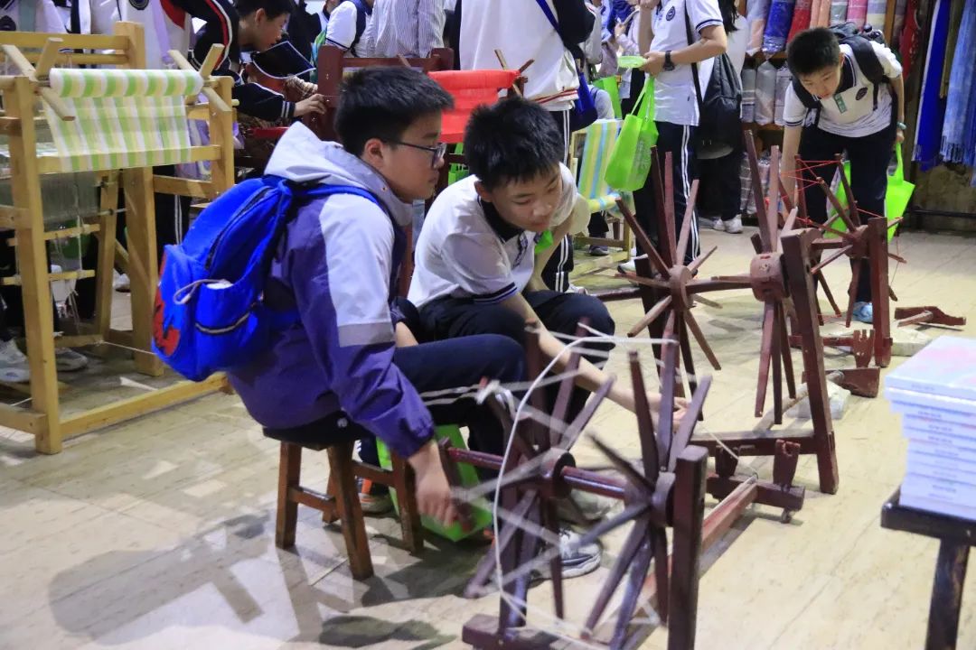 研学活动涵盖多元文化体验。在古法造纸馆,学生们亲手体验竹帘捞纸的工序,感受蔡伦改良造纸术的匠心;活字印刷体验区,墨香氤氲间,诗词拓印让孩子们触摸汉字传播的历史温度;国家级非遗织布技艺展演中,棉絮梳理、织机穿梭的全流程展示,令学生们惊叹古代劳动人民的智慧。民间剪纸与葫芦雕刻环节,孩子们在红纸翻飞与刻刀游走中,感受到传统工艺的精妙与美好。