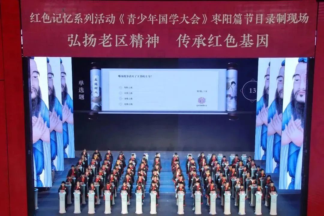 11月11日,“红色记忆系列活动《青少年国学大会》枣阳篇在中国汉城·汉颂剧院举行。该活动由中国数字电视国学频道《红色记忆》栏目组、枣阳市老区建设促进会主办,旨在通过知识竞赛引导青少年弘扬老区精神、传承红色基因、传播中华优秀传统文化。