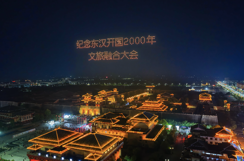 2025年10月22日晚,湖北枣阳中国汉城上空,近千架无人机以一场精彩绝伦的灯光秀,为东汉开国2000周年献上了一份特殊的贺礼。